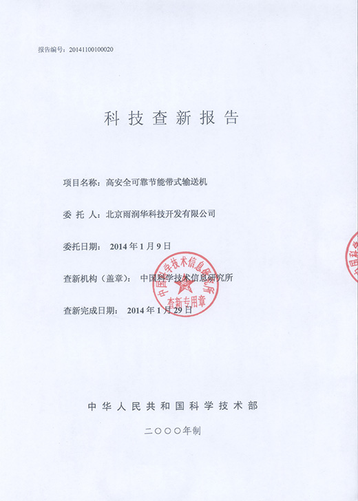 北京雨潤華公司科技查新報(bào)告