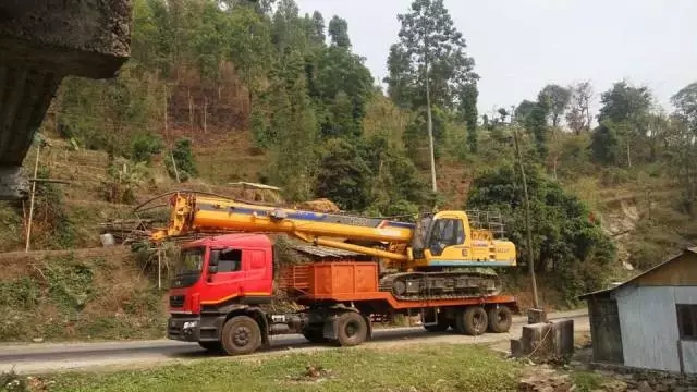 ▲兩臺XGC55T云南曲靖抬吊橋板