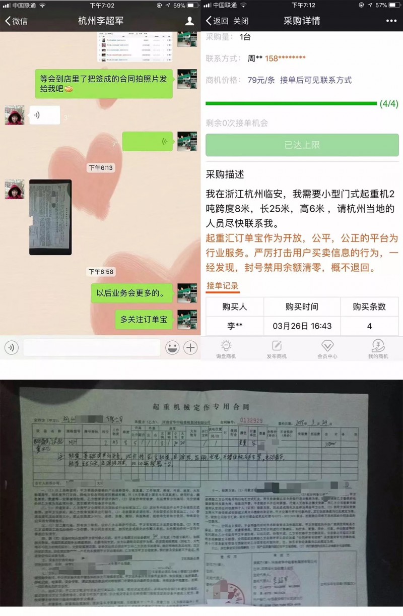 杭州杜總,一個(gè)月時(shí)間通過(guò)起重匯訂單寶連接三單起重業(yè)