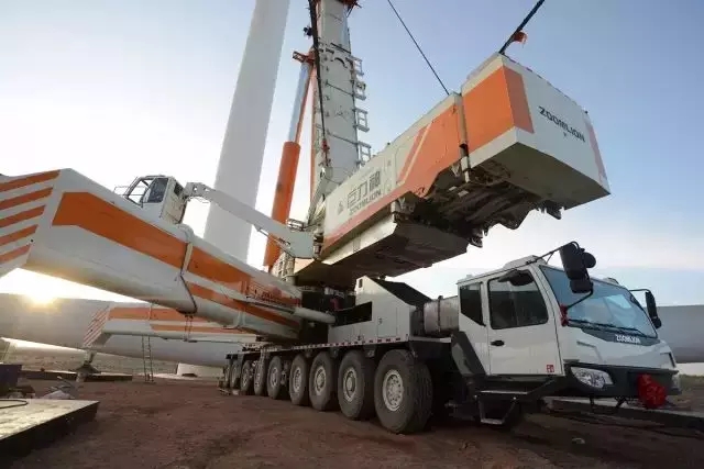 ▲中聯(lián)重科QAY2000在陜西定邊風(fēng)電施工現(xiàn)場(chǎng)