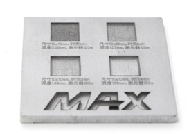 (2)金屬深雕:金屬深雕一般使用焦距(焦深)短的場(chǎng)鏡,當(dāng)高功率深雕時(shí),由于熱透鏡效應(yīng),材料處能量密度迅速下降,造成金屬打不深。由于光學(xué)元件中心比邊緣膨脹大,出現(xiàn)中心淺,四周深現(xiàn)象(深度不一致)。