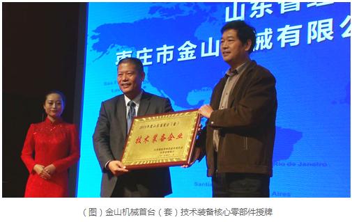會(huì)上,舉行了棗莊市金山機(jī)械院士工作站簽約儀式、棗莊市金山機(jī)械向中國工程院院士繆昌文院士頒發(fā)聘書儀式。金山機(jī)械院士工作站揭牌儀式、金山機(jī)械院士工作站“高品質(zhì)砂石骨料研發(fā)中心”授牌儀式。山東省經(jīng)濟(jì)和信息化委員會(huì)委托山東省機(jī)械工業(yè)協(xié)會(huì)郭金明會(huì)長宣讀了山東省金山機(jī)械省級(jí)技術(shù)中心、首臺(tái)套技術(shù)裝備核心零部件、山東省優(yōu)秀節(jié)能成果獎(jiǎng)文件決定,并進(jìn)行授牌。