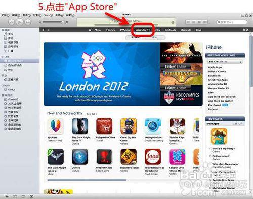 第四步.點擊iTunes頂部黑色導航條上的“App Store”