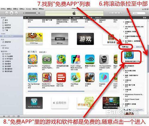 第五步.將滾動條拉至窗口中部,并找到免費應用列表“Free Apps”,然后隨意點擊進入一個免費應用?! ?/p>
