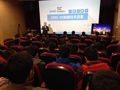 今年10月的NBA國際賽事系列上海站轉(zhuǎn)播中,百視通新媒體制作了國際公用信號,對整場比賽進(jìn)行了轉(zhuǎn)播。在觀眾看到的超清賽事畫面背后,是國內(nèi)規(guī)模最大的一次采用全4K標(biāo)準(zhǔn)進(jìn)行制作的賽事錄制流程。迄今為止,百視通是國內(nèi)唯一采用4K技術(shù)進(jìn)行體育賽事轉(zhuǎn)播的媒體;這也是百視通作為NBA官方合作伙伴,繼2013年上海賽之后第二次使用4K技術(shù)轉(zhuǎn)播此項賽事。2014年12月9日,曾為NBA上海賽,以及2014年FIFA巴西世界杯等國內(nèi)外重大賽事及現(xiàn)場活動提供4K設(shè)備與技術(shù)支持的索尼公司,在上海視覺藝術(shù)學(xué)院舉辦4K制播技術(shù)交流沙龍,百視通應(yīng)邀在會上分享了2014年NBA、武漢網(wǎng)球公開賽等大型賽事4K制播的經(jīng)驗。