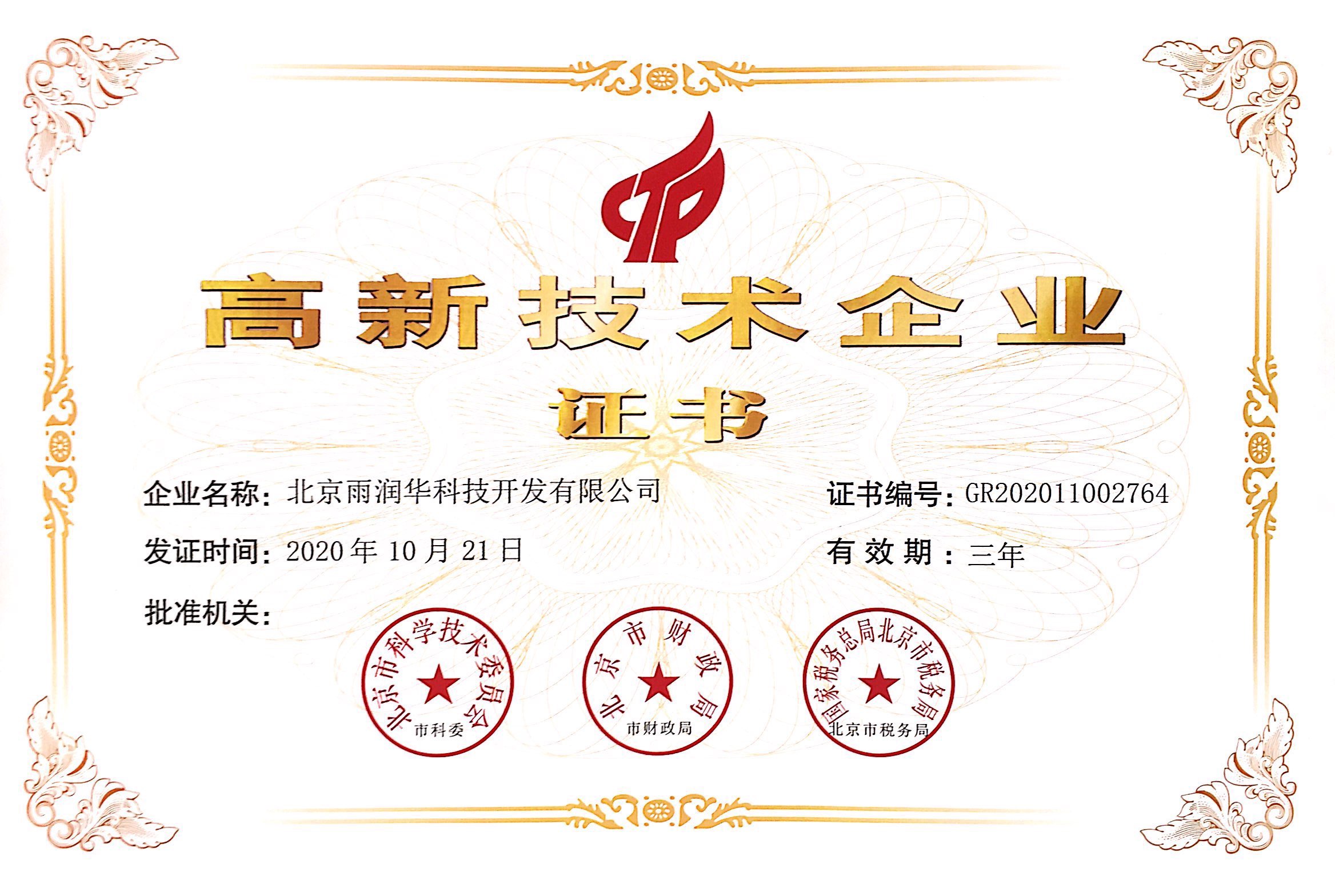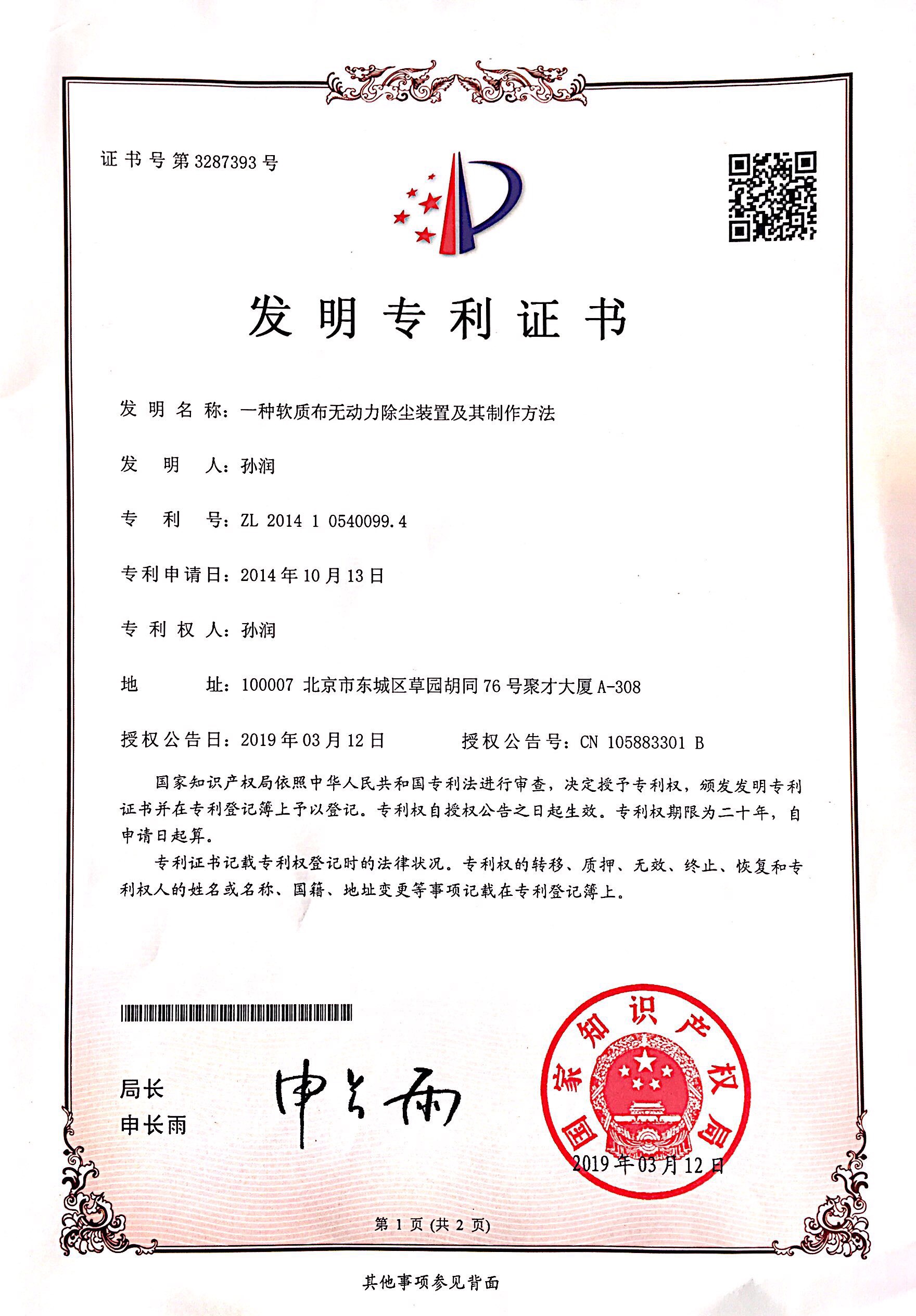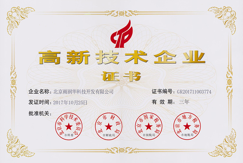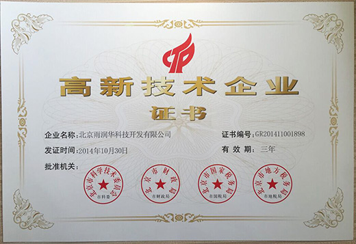 北京雨潤華公司專利資質(zhì)