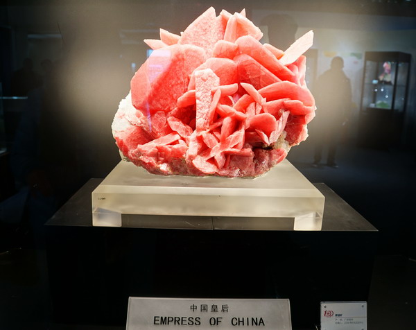 此次展覽以推介國內(nèi)重要礦產(chǎn)地、特色礦物晶體系列為主線,并兼顧展示了國外部分特色礦物晶體標(biāo)本。如產(chǎn)自廣東陽春石菉最大的花朵狀藍銅礦晶簇,產(chǎn)自內(nèi)蒙古黃崗梁最漂亮的黑柱石晶簇,產(chǎn)自廣西梧州世界罕見的菱錳礦標(biāo)本—“中國皇后”,產(chǎn)自湖南郴州迄今所見最大的巨型車輪礦晶體,產(chǎn)自四川雪寶頂?shù)膶毷壘扌桶祖u礦單晶和最大錫石單晶,產(chǎn)自湖北大冶的最美觀含錳巨型方解石單晶,產(chǎn)自陜西丹鳳的最大紅銻礦晶簇,產(chǎn)自新疆的極品電氣石和海藍寶石,產(chǎn)自湖南耒陽十分罕見的石英、螢石和白云石精美組合,產(chǎn)自陜西商南的珍稀綠簾石巨晶,產(chǎn)自江西的最壯美巨型輝銻礦晶簇,以及豐富多彩、千姿百態(tài)的各類礦物精品,均為首次集中面向社會公開展出。