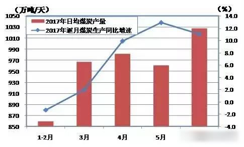 圖1 煤炭日均產(chǎn)量及增速(2017年1月至6月)