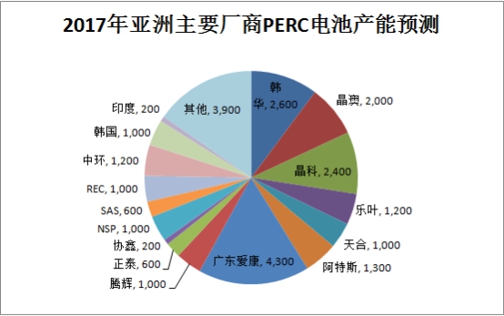 2017-2020光伏新增建設(shè)規(guī)模 除了大幅提升“領(lǐng)跑者”項(xiàng)目建設(shè)規(guī)模之外,能源局還提高了第三批光伏“領(lǐng)跑者”計(jì)劃的效率門(mén)檻。單、多晶組件的轉(zhuǎn)換效率分別在17.8%與17%,組件功率分別在295W和280W,對(duì)應(yīng)的單、多晶電池效率分別在21%與19.5%左右。從光伏技術(shù)上看,采用常規(guī)工藝將很難達(dá)到該“領(lǐng)跑者”指標(biāo),必須疊加新的電池技術(shù)或組件技術(shù)。 2017第三批領(lǐng)跑者效率門(mén)檻  在目前眾多的高效技術(shù)路線(xiàn)中,PERC技術(shù)及N型電池技術(shù)討論的最為炙手可熱。N型雙面、HJT、IBC等N型技術(shù)在初期導(dǎo)入成本昂貴,且N型硅片成本較高,所以在目前的領(lǐng)跑者項(xiàng)目并不能作為首選;而PERC技術(shù)工藝與現(xiàn)有電池生產(chǎn)線(xiàn)兼容性高,并且PERC電池轉(zhuǎn)換效率正在快速提高,預(yù)計(jì)到2018年將會(huì)超過(guò)22%,所以PERC技術(shù)也就成為了近期領(lǐng)跑者項(xiàng)目的主要選擇。 PERC技術(shù)是未來(lái)3~5年內(nèi)的主流電池技術(shù),而雙面PERC電池通過(guò)略微改變電池結(jié)構(gòu),在成本上與單面PERC產(chǎn)品相差無(wú)幾。在電池正面功率達(dá)到21.5%的基礎(chǔ)上,Hi-MO2背面受光可帶來(lái)明顯的功率增益,如背面發(fā)電增加10%,PERC雙面綜合效率達(dá)到23%以上。PERC雙面組件的折算功率可達(dá):60片330瓦(正面305瓦)、72片為396瓦(正面365瓦),這一技術(shù)勢(shì)必將成為PERC組件的未來(lái)發(fā)展趨勢(shì)。 目前,分布式光伏項(xiàng)目迅速增長(zhǎng),2017年上半年,全國(guó)光伏新增裝機(jī)超過(guò)24吉瓦,其中分布式光伏新增裝機(jī)超過(guò)7吉瓦,同比增長(zhǎng)近3倍;居民分布式光伏裝機(jī)增長(zhǎng)最為迅猛,同比增長(zhǎng)7倍多占總裝機(jī)容量的近30%。如何在有效的面積內(nèi)獲得更高的發(fā)電量也就成為了亟需解決的問(wèn)題。歐美和日本等分布式發(fā)展較早的光伏市場(chǎng),高效組件需求已經(jīng)成為主流,PERC技術(shù)恰恰迎合了這一需求。 PERC技術(shù)在2014年開(kāi)始成熟,2015-2016年迎來(lái)了產(chǎn)能的暴發(fā)增長(zhǎng)期,一線(xiàn)廠(chǎng)商如晶科、晶澳、天合、阿特斯、協(xié)鑫、隆基樂(lè)葉、廣東愛(ài)康、韓華Q CELLS、REC等均在積極擴(kuò)產(chǎn)。據(jù)亞化咨詢(xún)統(tǒng)計(jì),2016年全球PERC電池產(chǎn)能已達(dá)15GW,2017年全球PERC電池產(chǎn)能將達(dá)30GW。隨著PERC產(chǎn)線(xiàn)設(shè)備的持續(xù)完善和國(guó)產(chǎn)化,以及適用于PERC工藝的導(dǎo)電漿料和金屬化技術(shù)的成熟,PERC電池產(chǎn)業(yè)化將迎來(lái)高峰期。  雖然目前光伏市場(chǎng)電池/組件呈現(xiàn)低端產(chǎn)能過(guò)剩,高端產(chǎn)能?chē)?yán)重不足。高效電池片及高效組件的市場(chǎng)需求非常旺盛。PERC技術(shù)的發(fā)展超過(guò)了預(yù)期,給其他種類(lèi)的晶硅電池技術(shù)帶來(lái)很大的沖擊,同時(shí)PERC電池具有成本優(yōu)勢(shì),其成本和常規(guī)電池接近。由于市場(chǎng)需求過(guò)于旺盛,PERC電池供應(yīng)嚴(yán)重不足,未來(lái)幾年P(guān)ERC電池與常規(guī)電池存在一定的技術(shù)溢價(jià),一定程度上掩蓋了常規(guī)電池的生存危機(jī)。隨著一線(xiàn)企業(yè)PERC產(chǎn)能的提升,可以預(yù)見(jiàn)到由于技術(shù)升級(jí)、產(chǎn)品換代引發(fā)的新一輪產(chǎn)業(yè)洗牌正在緩緩到來(lái),在技術(shù)、資金等方面準(zhǔn)備不足的企業(yè)面對(duì)的將是淘汰出局。 未來(lái)的幾年行業(yè)的格局將發(fā)生重大的變化,掌握先進(jìn)技術(shù)、擁有先進(jìn)產(chǎn)能企業(yè)的市場(chǎng)占有率將不斷提升。新一輪技術(shù)變革中,企業(yè)要深入認(rèn)識(shí)產(chǎn)業(yè)變革特征,抓住核心變革點(diǎn),迅速做出應(yīng)對(duì)策略,將高效PERC技術(shù)成為主攻方向,在研發(fā)和生產(chǎn)層面對(duì)技術(shù)和量產(chǎn)進(jìn)行開(kāi)發(fā)和儲(chǔ)備,力爭(zhēng)在新產(chǎn)業(yè)變革中搶占先機(jī),實(shí)現(xiàn)產(chǎn)線(xiàn)快速轉(zhuǎn)型升級(jí),成為新一輪產(chǎn)業(yè)變革的引領(lǐng)者。