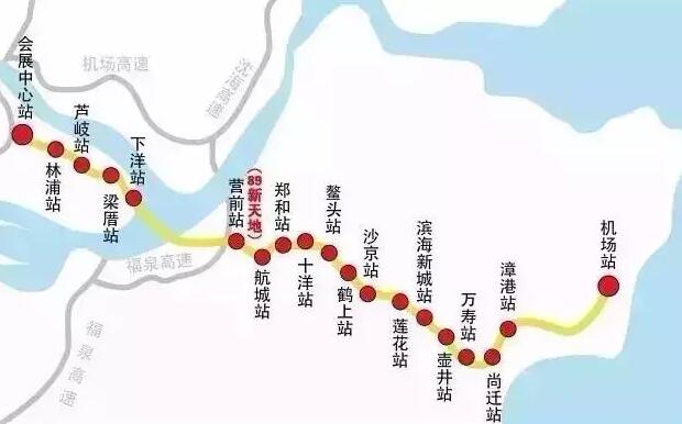 地鐵6號線仍設站19座:即會展中心站、林浦站、蘆岐站、梁厝站、下洋站、營前站、航城站、鄭和站、十洋站、鰲頭站、鶴上站、沙京站、蓮花站、濱海新城站、壺井站、萬壽站、尚遷站、漳港站、機場站。