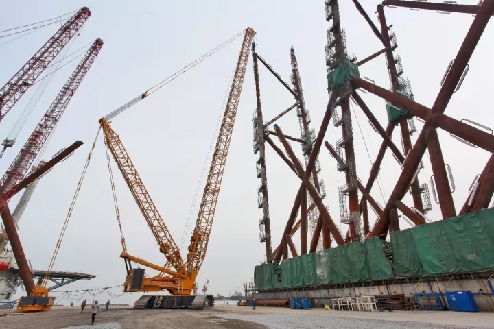 ■ XGC88000履帶起重機(jī)完成4500噸極限吊裝
