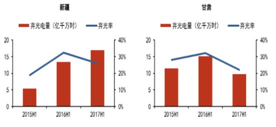 2015H1-2017H1 主要棄光省份棄光限電情況