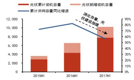 2015H1-2017H1全國光伏建設(shè)并網(wǎng)情況(萬千瓦)