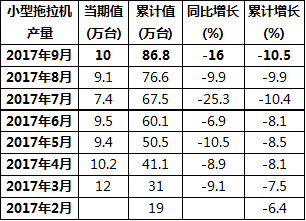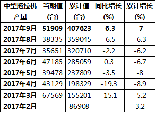 9月份大拖產量銳減 中拖繼續(xù)攀升 小拖略有上升 —— 文章正文2017-11-07