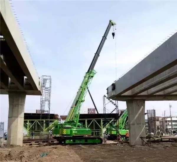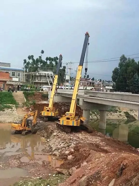 ▲兩臺XGC55T云南曲靖抬吊橋板