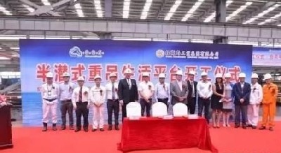 圖:6月28日,招商局重工(江蘇)有限公司為OOS建造的CMHI-163-1半潛式重吊生活平臺舉行開工儀式。