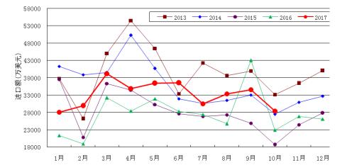 2013至2017年各月進(jìn)口額