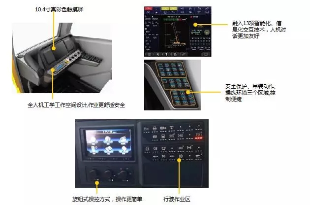 融入13項智能化、信息化交互技術(shù),人機對話更加友好。全人機工學(xué)工作空間設(shè)計,作業(yè)更舒適安全,輕松掌控車輛行駛、起重作業(yè)的各種狀態(tài)信息,操縱更輕松、便捷。