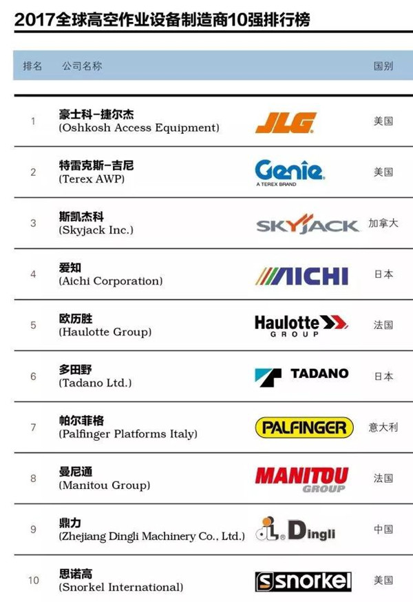 近期,根據(jù)中國各高空作業(yè)設(shè)備制造商經(jīng)營數(shù)據(jù),全球高空作業(yè)設(shè)備峰會組委會聯(lián)合《中國工程機(jī)械》雜志共同重磅發(fā)布了中國高空作業(yè)設(shè)備制造商5強(qiáng)榜單和全球高空作業(yè)設(shè)備制造商10強(qiáng)排行榜。