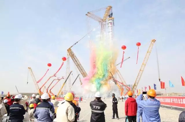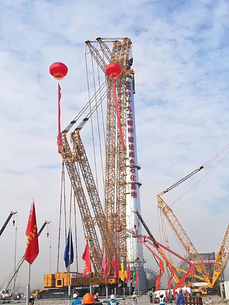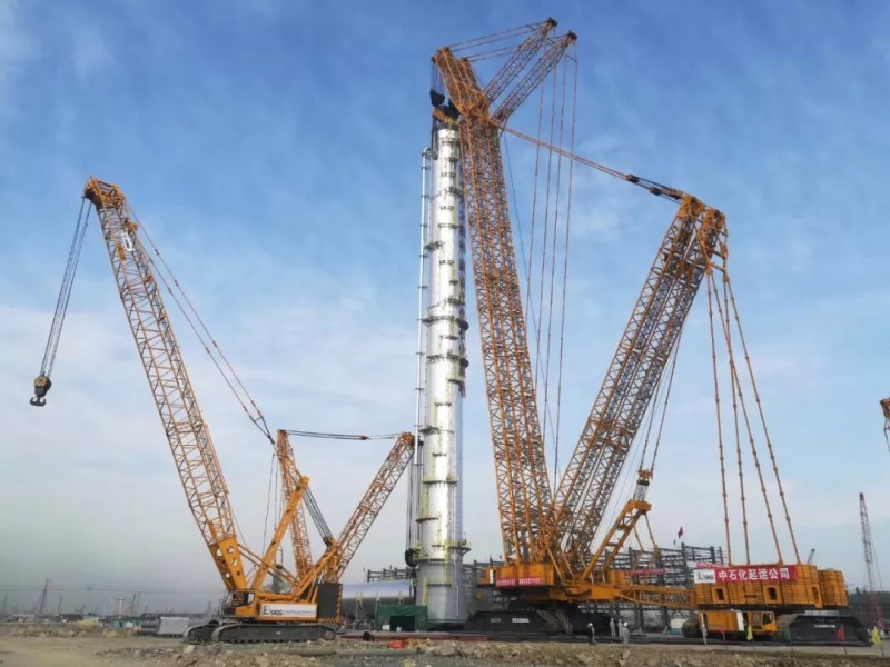 12月23日10時(shí)17分,某海島煉化一體化工程建設(shè)工地現(xiàn)場。經(jīng)過3個(gè)多小時(shí)的起升溜尾,在徐工4000噸級XGC88000履帶式起重機(jī)主吊與徐工1250噸級XGC16000履帶式起重機(jī)溜尾輔吊的合力吊裝下,圓滿完成了2#丙烯精餾塔吊裝就位任務(wù)。