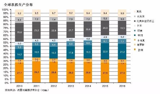 歐洲為全球最大的農(nóng)機生產(chǎn)地區(qū),中國為全球第一大生產(chǎn)國