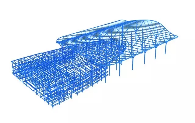 據(jù)了解,北區(qū)C10登錄大廳單體長約250米,最大跨度約126米,高度39米,結(jié)構(gòu)形式為下部鋼框架+斜交單層網(wǎng)殼鋼罩棚結(jié)構(gòu)。其中鋼罩棚最大跨度126m,最大標(biāo)高38.9米。網(wǎng)殼尺寸為6.3米的單元網(wǎng)格,分片最大跨度27米。屋面層桁架截面高度4.35米,最大跨度45米。登錄大廳是本工程集結(jié)構(gòu)形式復(fù)雜、體量大、工期緊、凈空高、交叉工序多等特點(diǎn)于一體的單體,對(duì)施工方法選擇、措施布置、平面部署、測(cè)量精度控制、質(zhì)量安全保障等均有極高要求。
