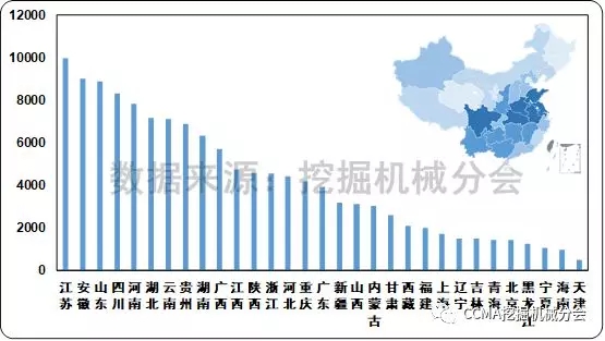 圖9 2017年國(guó)內(nèi)挖掘機(jī)械市場(chǎng)各省份銷量