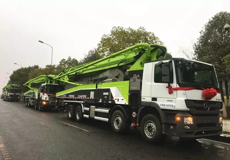 ▲中聯(lián)重科混凝土泵車從麓谷工業(yè)園緩緩駛出