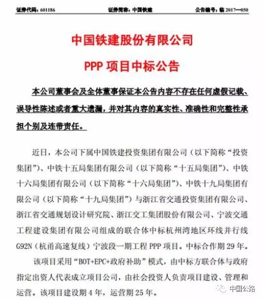 去年8月,中國(guó)鐵建發(fā)布公告稱,其聯(lián)合體中標(biāo)杭州灣地區(qū)環(huán)線并行線G92N(杭甬高速?gòu)?fù)線)寧波段一期工程PPP項(xiàng)目,總投資約180.96億元,預(yù)計(jì)建設(shè)期4年,運(yùn)營(yíng)期25年。