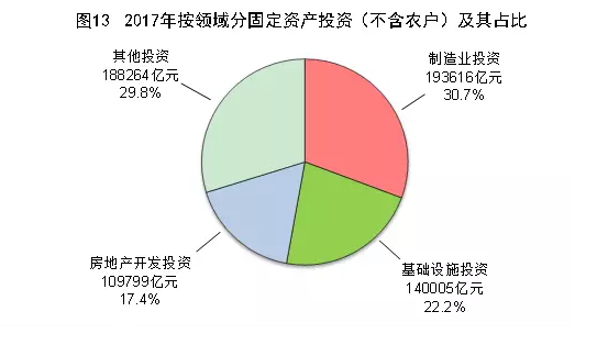 2017年全社會(huì)固定資產(chǎn)投資641238億元,比上年增長7.0%。其中固定資產(chǎn)投資(不含農(nóng)戶)631684億元,增長7.2%。分區(qū)域看,東部地區(qū)投資265837億元,比上年增長8.3%;中部地區(qū)投資163400億元,增長6.9%;西部地區(qū)投資166571億元,增長8.5%;東北地區(qū)投資30655億元,增長2.8%。