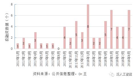 從圖2,我們可以看到2017年以來機器人行業(yè)公司投融資數(shù)量月度變化趨勢。非常明顯,機器人行業(yè)從2017年初以來,得到風險投資支持的創(chuàng)業(yè)公司數(shù)量越來越多,形勢不錯。