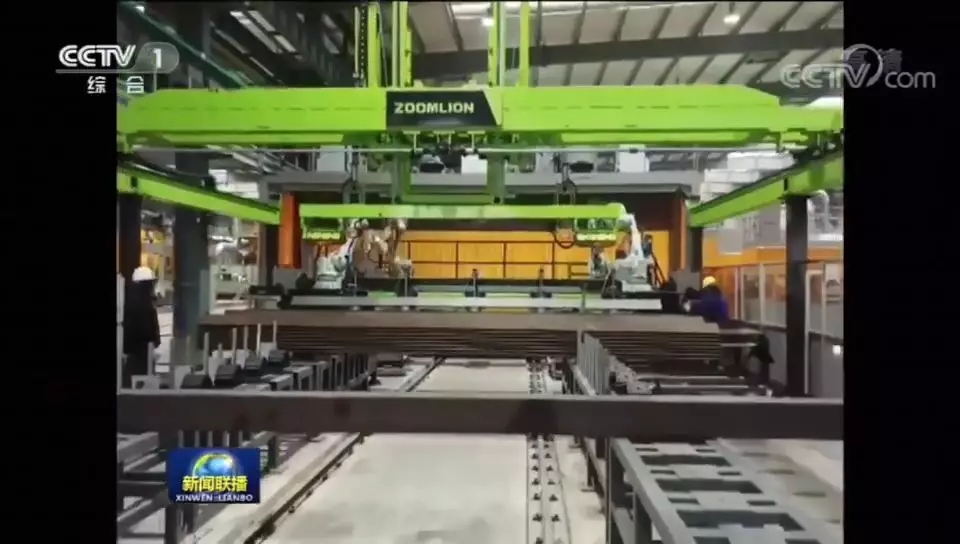 ▲央視新聞聯(lián)播截圖:中聯(lián)重科智能工廠