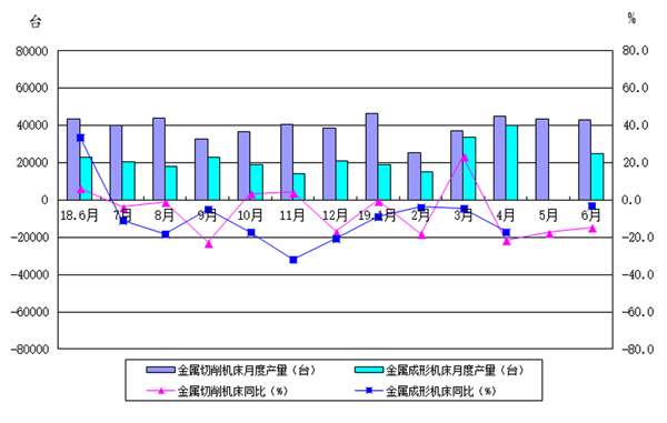 另一方面,2019年機(jī)床工具行業(yè)主要經(jīng)濟(jì)指標(biāo)低點(diǎn)起步,并在1-6月份一直處于同比降低狀態(tài),與基期數(shù)據(jù)水平有關(guān)。作為對比的基期,2018年1-4月份機(jī)床工具行業(yè)處于較快增長區(qū)間,5、6月份稍有回落,但仍處于高位運(yùn)行狀態(tài)。2018年下半年持續(xù)下滑,并且這一趨勢一直延續(xù)至2019年上半年。