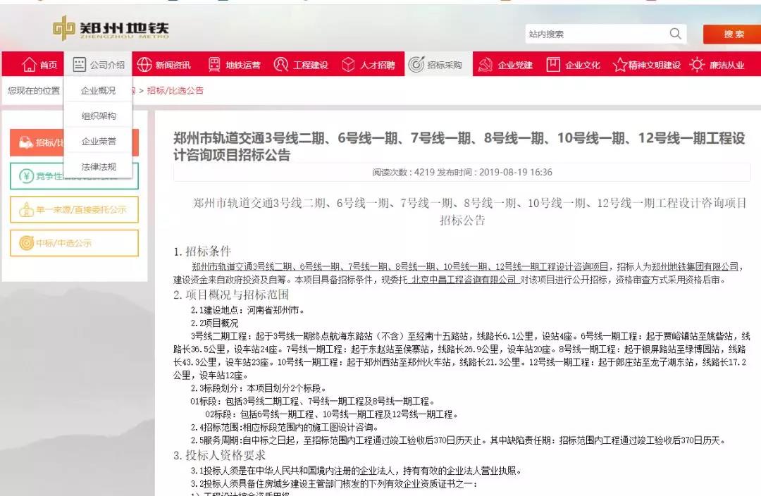 8月19日,鄭州地鐵官網(wǎng)發(fā)布《鄭州市軌道交通3號(hào)線二期、6號(hào)線一期、7號(hào)線一期、8號(hào)線一期、10號(hào)線一期、12號(hào)線一期工程設(shè)計(jì)咨詢項(xiàng)目招標(biāo)公告》,預(yù)示著這些線路有了進(jìn)一步的動(dòng)態(tài)!