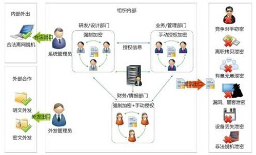 可見,如果文檔本身是沒有經過任何的安全處理,要防范文件信息不被惡意的獲取是非常困難的,因此只有對文檔本身進行加密控制才能達到企事業(yè)單位數據防泄密的要求,常見的信息泄密途徑。