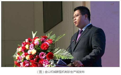 在下午的會議中,進行了金山機械新型機制砂生產(chǎn)線發(fā)布,金山機械機制砂事業(yè)部經(jīng)理周韜略對金山機械機制砂系統(tǒng)做了全面的介紹。金山機械JSS階梯式制砂系統(tǒng)采用干法生產(chǎn)工藝和集成式布局,系統(tǒng)布局緊湊,生產(chǎn)過程綠色環(huán)保,產(chǎn)品顆粒形狀圓潤、級配連續(xù)穩(wěn)定、石粉含量可控、細度模數(shù)可調(diào),是新型制砂工藝的典型代表。