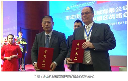 隨后舉行了金山機械與奧地利森佩理特百斯特集團中國區(qū)戰(zhàn)略合作伙伴的簽約儀式。森佩理特百斯特制帶有限公司隸屬于奧地利森佩理特集團,該集團在輸送帶方面有50年的經(jīng)驗。此次與金山機械達成戰(zhàn)略合作,并在會議上舉行了簽約儀式。兩家具有同樣的客戶群,都有各自領(lǐng)域最先進的設(shè)備。金山機械與森佩理特合作,將對自身產(chǎn)品系列進行有力的補充,并強化金山精品骨料生產(chǎn)線的輸送帶系統(tǒng),為用戶帶來更優(yōu)質(zhì)的骨料生產(chǎn)線系統(tǒng)。