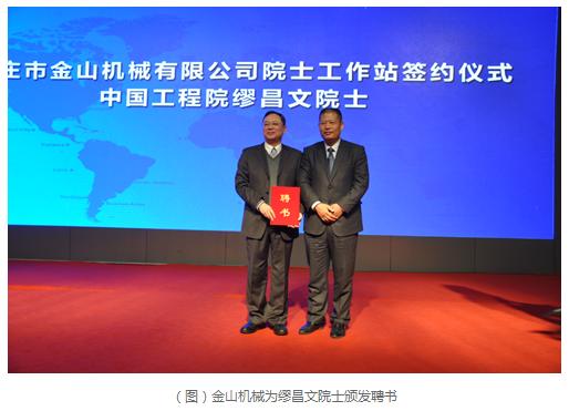 會上,舉行了棗莊市金山機械院士工作站簽約儀式、棗莊市金山機械向中國工程院院士繆昌文院士頒發(fā)聘書儀式。金山機械院士工作站揭牌儀式、金山機械院士工作站“高品質(zhì)砂石骨料研發(fā)中心”授牌儀式。山東省經(jīng)濟和信息化委員會委托山東省機械工業(yè)協(xié)會郭金明會長宣讀了山東省金山機械省級技術(shù)中心、首臺套技術(shù)裝備核心零部件、山東省優(yōu)秀節(jié)能成果獎文件決定,并進行授牌。